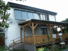 Rodinný dům v Krasném Poli, ul. Předvrší je vybaven solárním systémem pro kombinovaný ohřev pitné vody a přitápění. Použity byly ploché vákuové kolektory TS400. Díky instalaci na obvodovém plášti domu jsou osazeny pod sklonem 75 st., což příznivě ovlivňuje energetické zisky v zimních měsících, kdy je slunce nízko nad obzorem. Díky tomuto sklonu také nedochází k usedání sněhu na kolektorové ploše, což je zejména u vákuových kolektorů problémem výrazně ovlivňujícím jejich účinnost v zimních měsících (u kolektorů s nižším sklonem by docházelo k zasněžení a jejich vyloučení z provozu v zimních měsících).